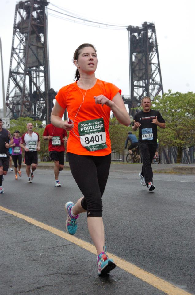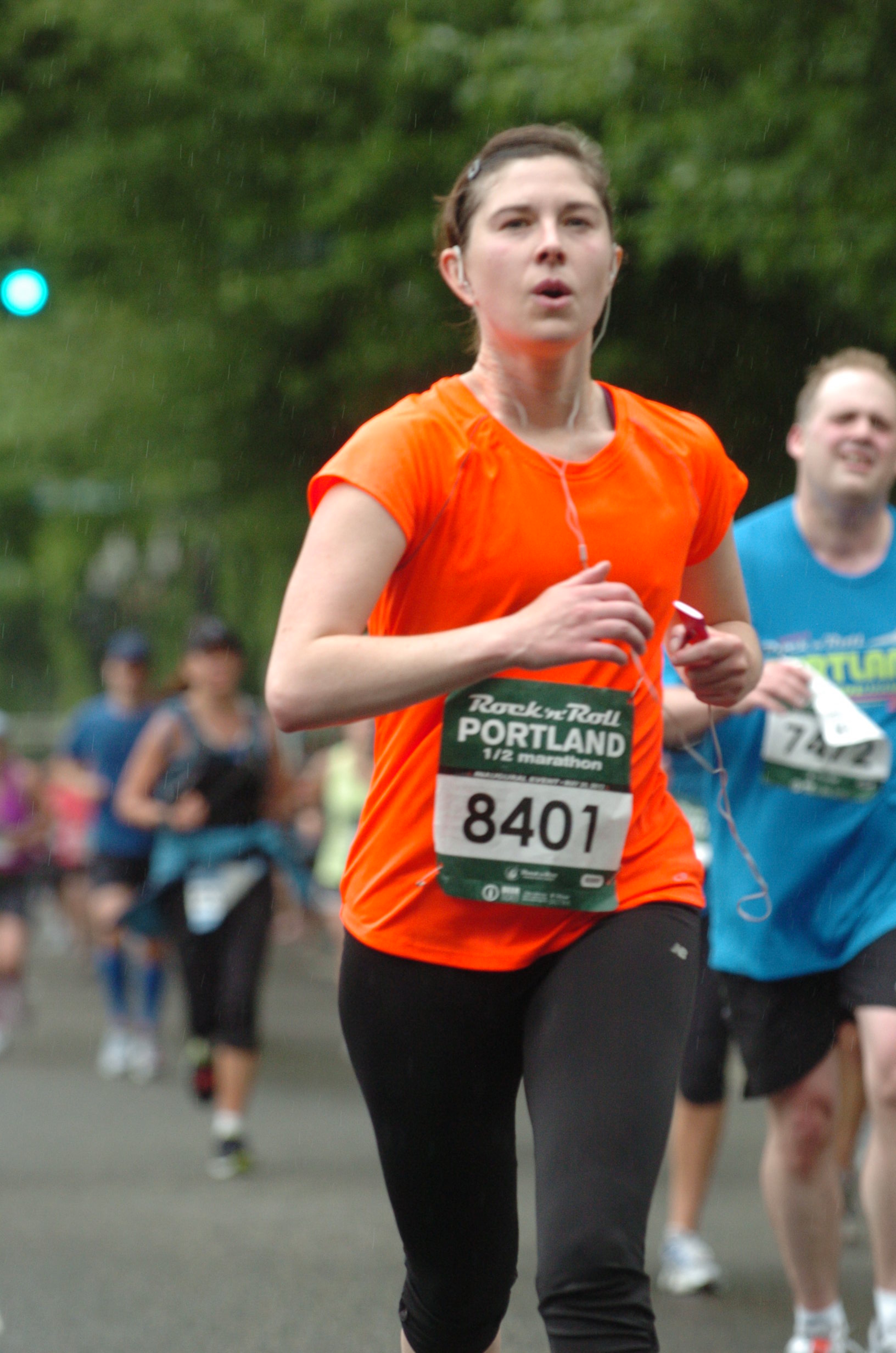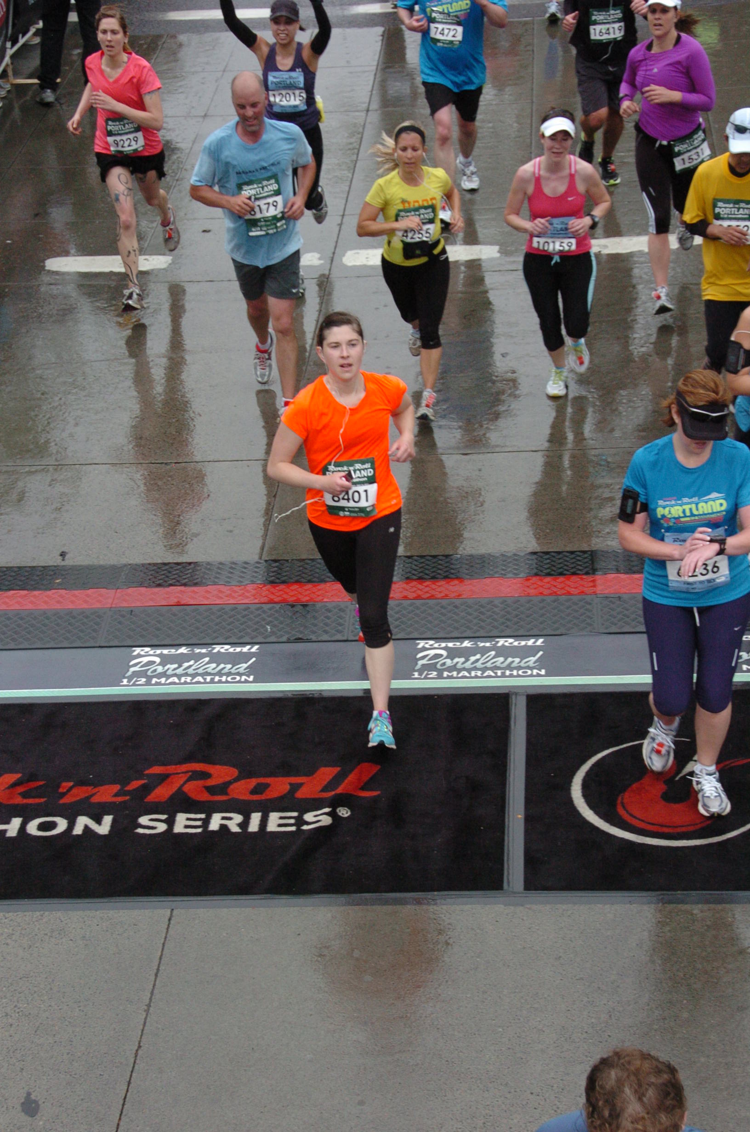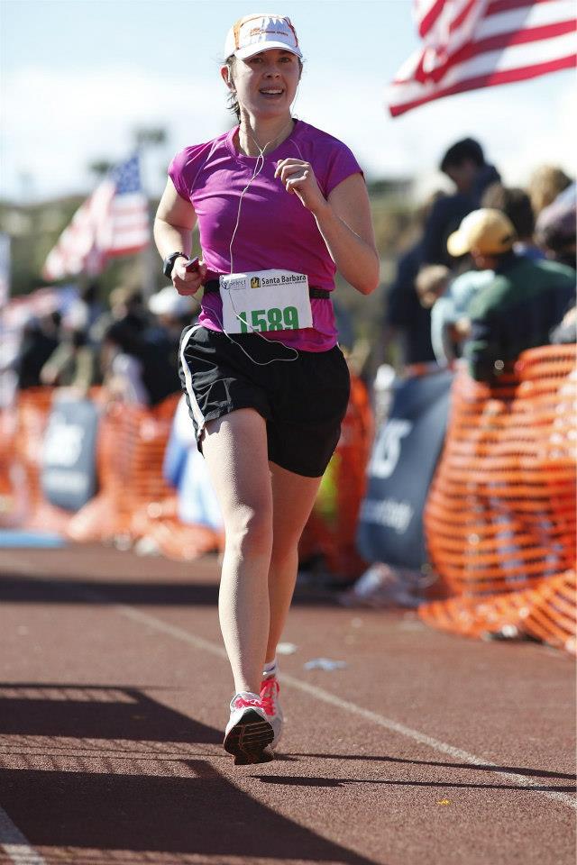 For the second 13.1 miles I listened to a wonderful, terrible mix of Ke$ha, Gaga, Rihanna, and Taio Cruz with a few hard-hitting 80s and indie rockers in for good measure. I also passed people the whole way. I achieved a negative-split, the sought after goal of running the second half of a race faster than the first. The feeling of passing people for not just one mile but thirteen got my mind in a spin. What kind of a person was I now? I felt like a combination of Sasha Fierce and Rocky Balboa: a lean beast let out of her cage. I was now a person who succeeded, who was somehow better than someone else. The girl who got into the best school, got the guy, and rose to the top of her career. The girl who wore delicate, expensive gold necklaces instead of junk jewelry from Forever 21. Or had this girl been there all along? Who could I be when presented with a clear, manageable challenge? Who would I be if that happened on a regular basis? Could I do this in aspects other than running? Sailing past the orange groves, rolling hills, and trails through the Santa Barbara suburbs I thought that maybe I could. As these questions and thoughts passed through my head I was still running. And when I planned at which mile I could refuel with sports beans I was still running. Hours passed and I was still. running. When I approached the steepest hill at mile 24 listening to Joy Formidable’s “Whirring,” wailing: “All these things about me you never can tell…” and kept running and climbing without ever experiencing “the wall,” I knew I could be that person. The last mile of the race was a blur of elation. Fellow runners cheered “you go, girl” as I passed. Charging down the final hill, I was both a part of the terrain and the sky, as though little birdies were lifting me into those blue, California skies. Listening to OneRepublic’s “Good Life” I felt that I could keep going, that an ultra-marathon (50 plus miles) was in my grasp. When I burst into the stadium at that last .2 mile I saw my friends waving and cheering with surprise at how happy and energized I looked at the end of a marathon. I did a little dance before I crossed the finish line to prove they were right.